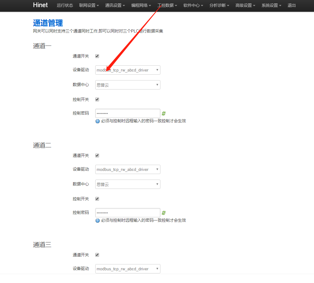 1. 点表协议与网关后台的驱动协议不一致,以思普云平台采集数据为例,思普云平台的产品管理处查看产品的协议名称。进网关后台“工控数据 - 通道管理”处查看设备驱动。点表协议必须与网关后台驱动协议一致。